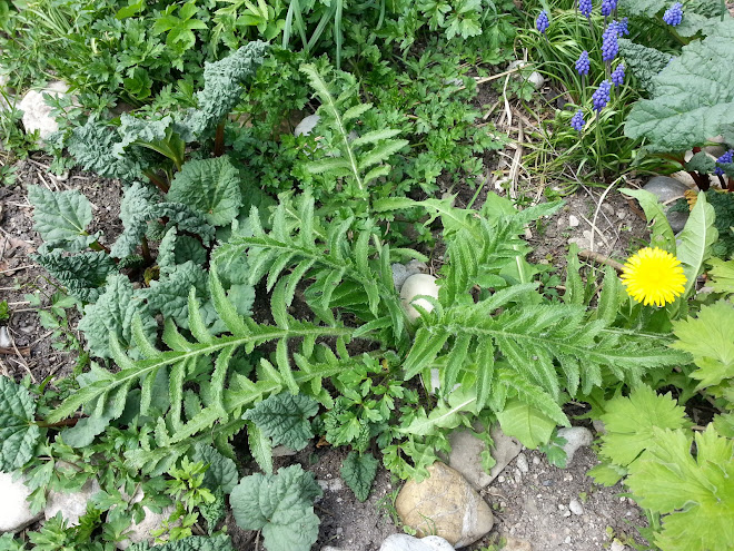 Für Gartenarbeit blieb nicht viel Zeit, habe nur ein paar Büsche und Wurzeln vorm Haus entfernt und den Boden dort umgegraben, weil ich meinen Rhabarber umsetzen möchte. Der steht nach einer "Rettungsaktion" im Blumenbeet, weil ich auf die Schnelle keinen besseren Platz gefunden hatte.